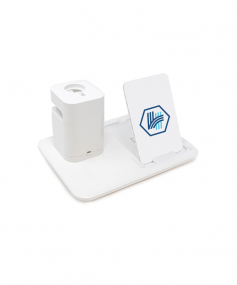 The 3-in-1 charging dock. Tired of fumbling with messy wires and unsafe charging cords? The Docksy is your three-in-one charging solution. Ideal for a nightstand or counter, the Docksy allows you to recharge each of your smart devices at once! 6" W x 8" L x 4.3" H