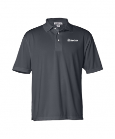 Made of 4.0 Oz., 100% polyester. Features moisture wicking fabric, fashion knit collar with box placket and three white pearlized buttons, and double-needle stitched cuffs and side vents.