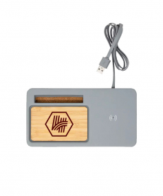Wirelessly charge your devices in style with this one-of-a-kind power station. The Power Mantle has a spot for your business card and branding on a bamboo plate, making it the perfect desktop accessory. 3.9" W x 7.3" L x 0.058" H